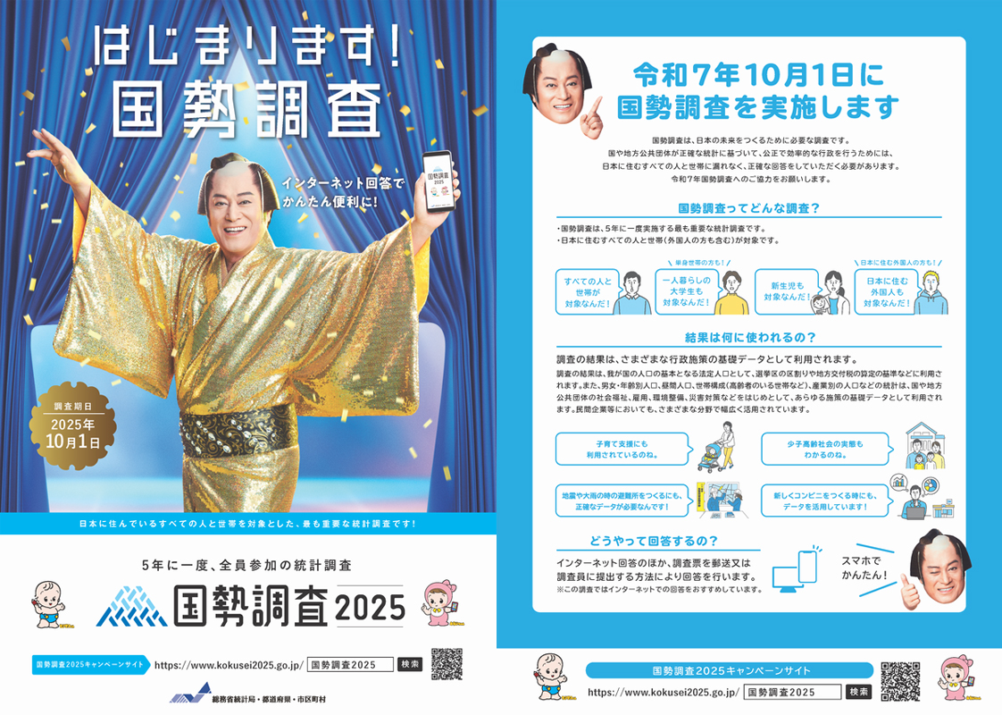 令和7年10月1日を基準日とした「令和7年国勢調査」が実施されます。